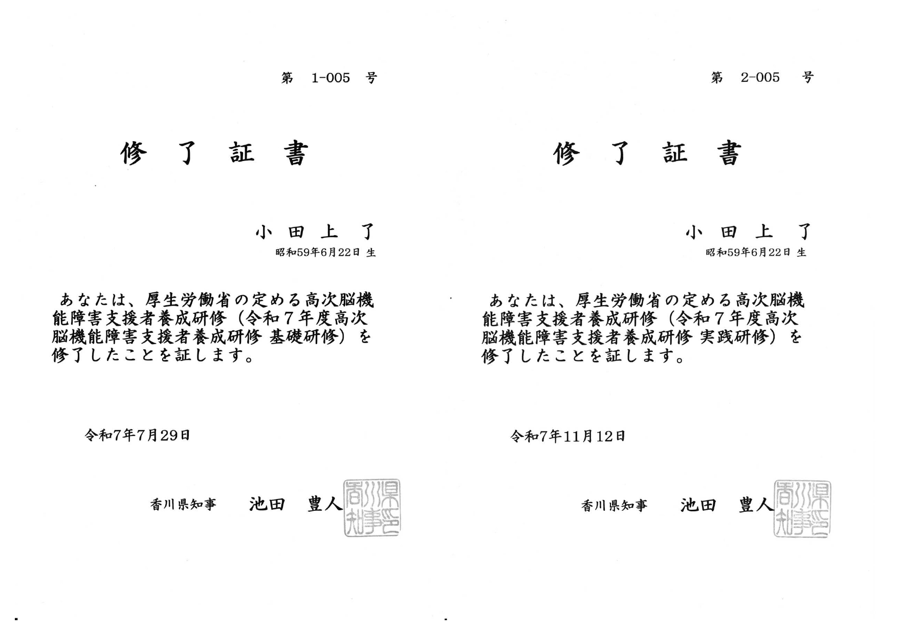 3. 高次脳機能障害支援者養成研修受講修了証書